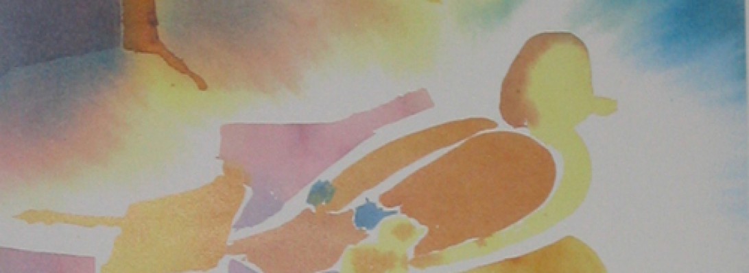 Life on the Edge 2 Watercolour 15″ x 22″ Often, on the lake, I will not notice wildlife until it moves. In this painting, I wanted to depict a mother duck, with duckling, who were all but invisible until they swam into the sunlight. Price $350