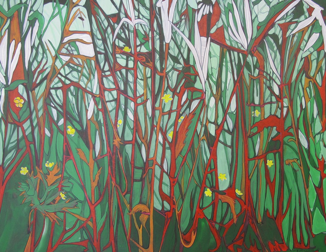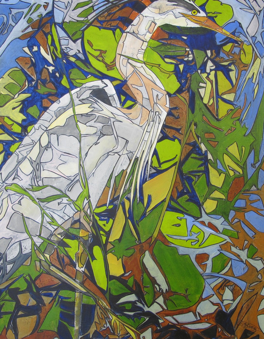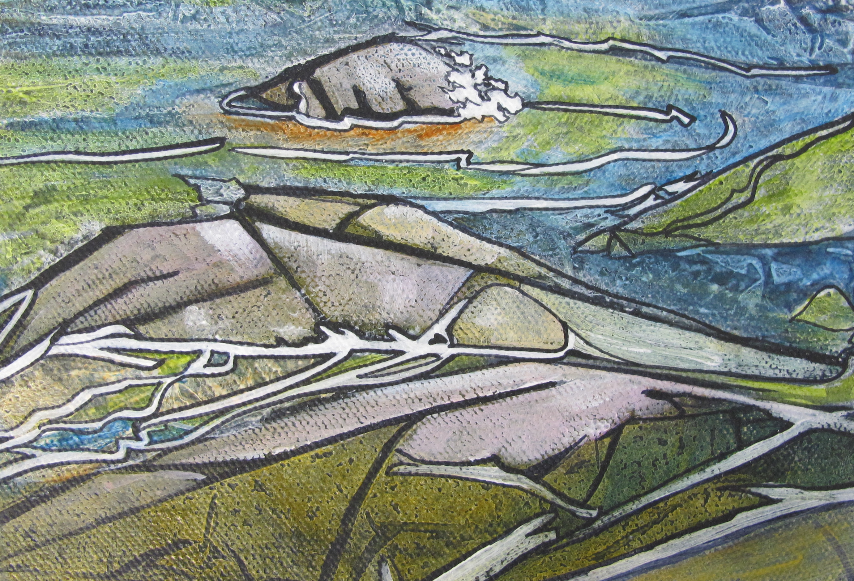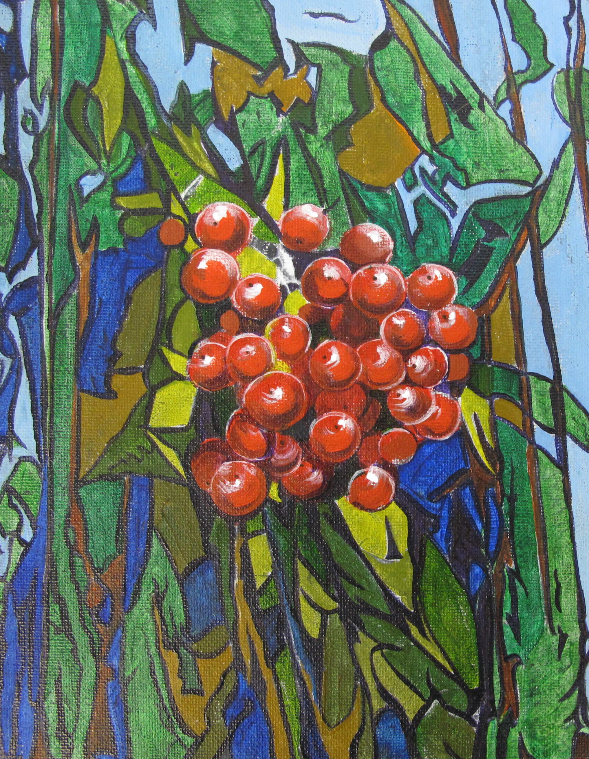 This series, completed in 2015, consists of 25 acrylic paintings in various sizes. The underlying pattern in each piece reflects the idea that we are all part of a greater whole. The shattered images imitate the dance of light and shadow in the glow of summer.