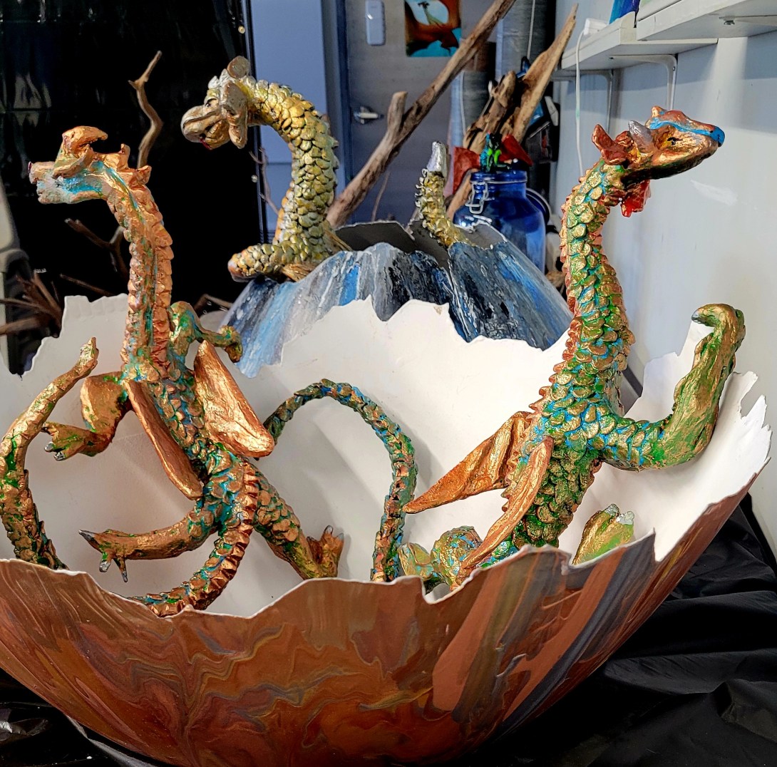 I started painting dragons in March 2020…who knows why…but they quickly became a visual representation of our covid 19 battles. Since then, I’ve branched out, creating all kinds of dragons in various media. The magic of fantasy is so much fun, I’ve set a goal of 100 images.