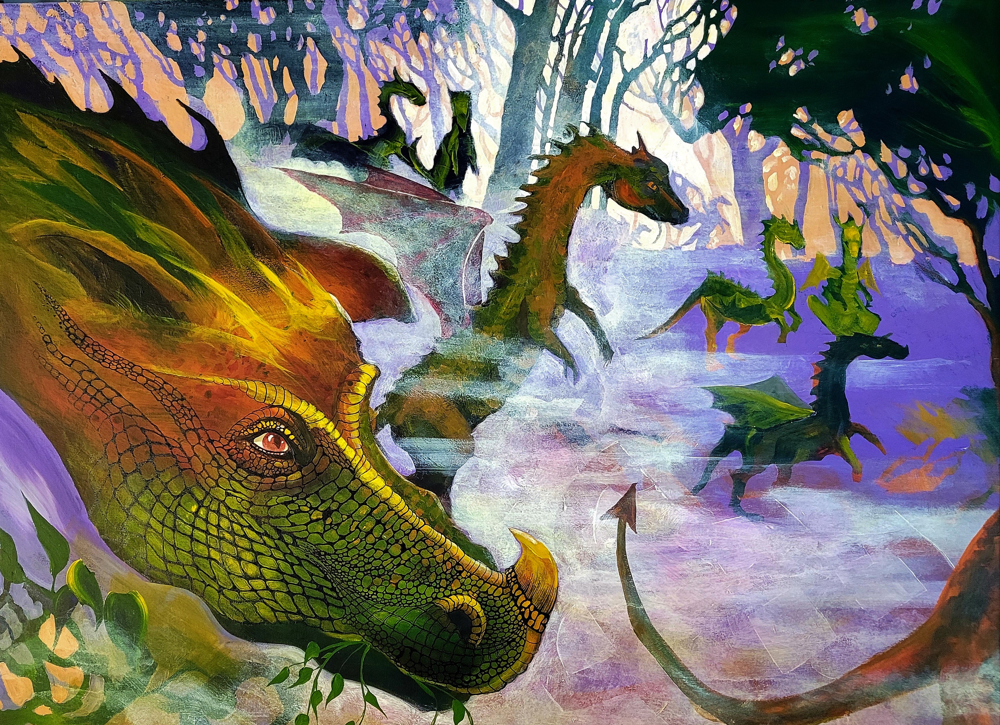 I started painting dragons in March 2020…who knows why…but they quickly became a visual representation of our covid 19 battles. Since then, I’ve branched out, creating all kinds of dragons in various media. The magic of fantasy is so much fun, I’ve set a goal of 100 images.